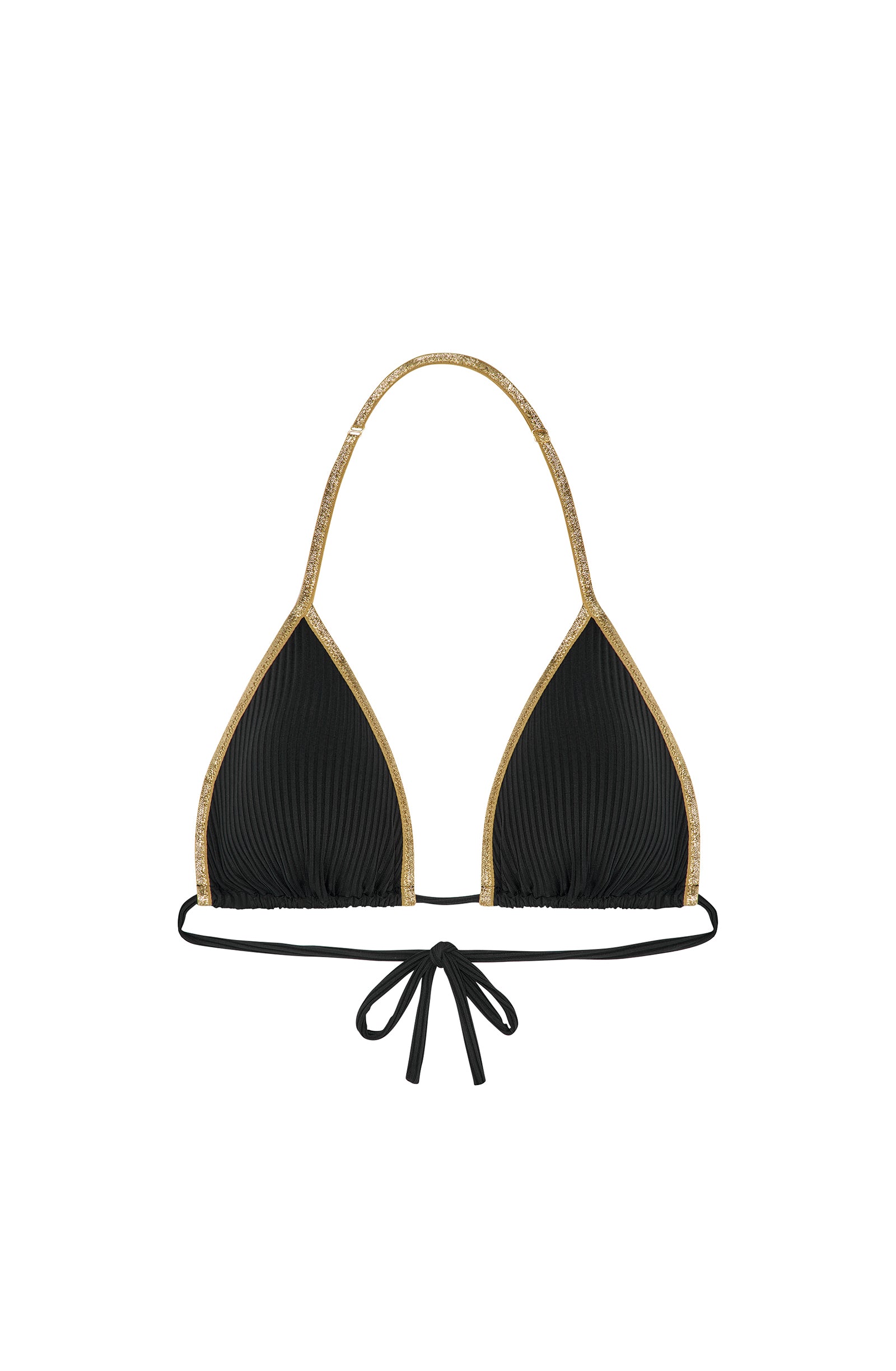• Front and back V-neckline surrounded by a folded elastic golden Lurex trim with a soft touch on the underside