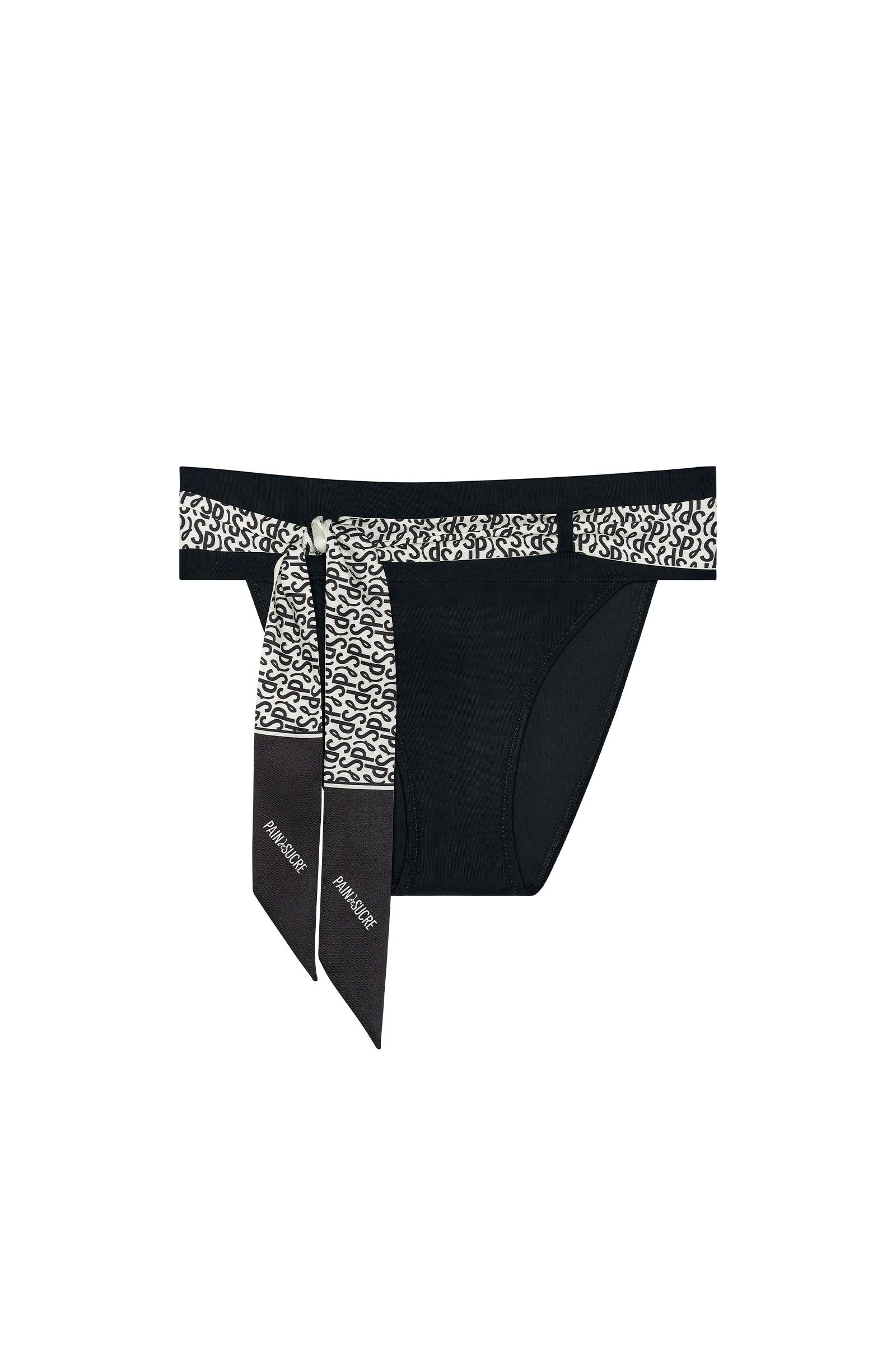 The plain soft bandeau top EVRY is adorned with a scarf branded with the Pain de Sucre monogram. A graphic detail that adds a smart touch to this bikini top. Black, a timeless colour that is always elegant.