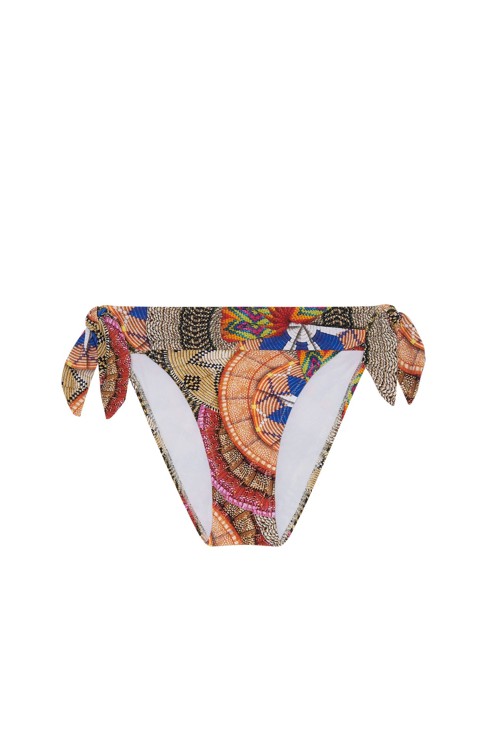 Half-cup, underwired moulded cup bikini top. Cuts on the cups. Wide flared multiposition straps: tied around the neck, tied as a sports bra at the middle of the back or folded-over at the back as a strapless top. Silver hook-closure at the back.