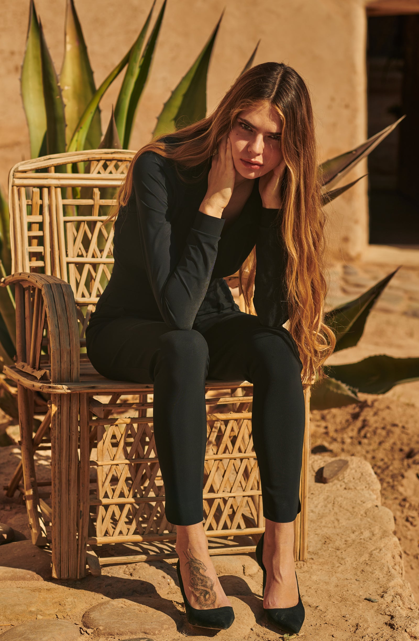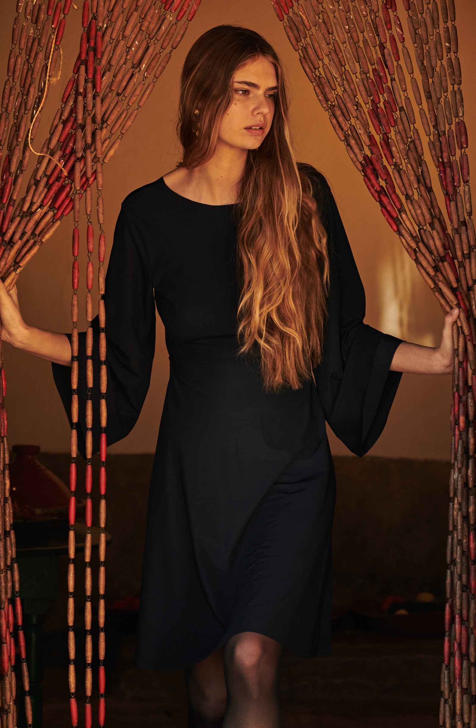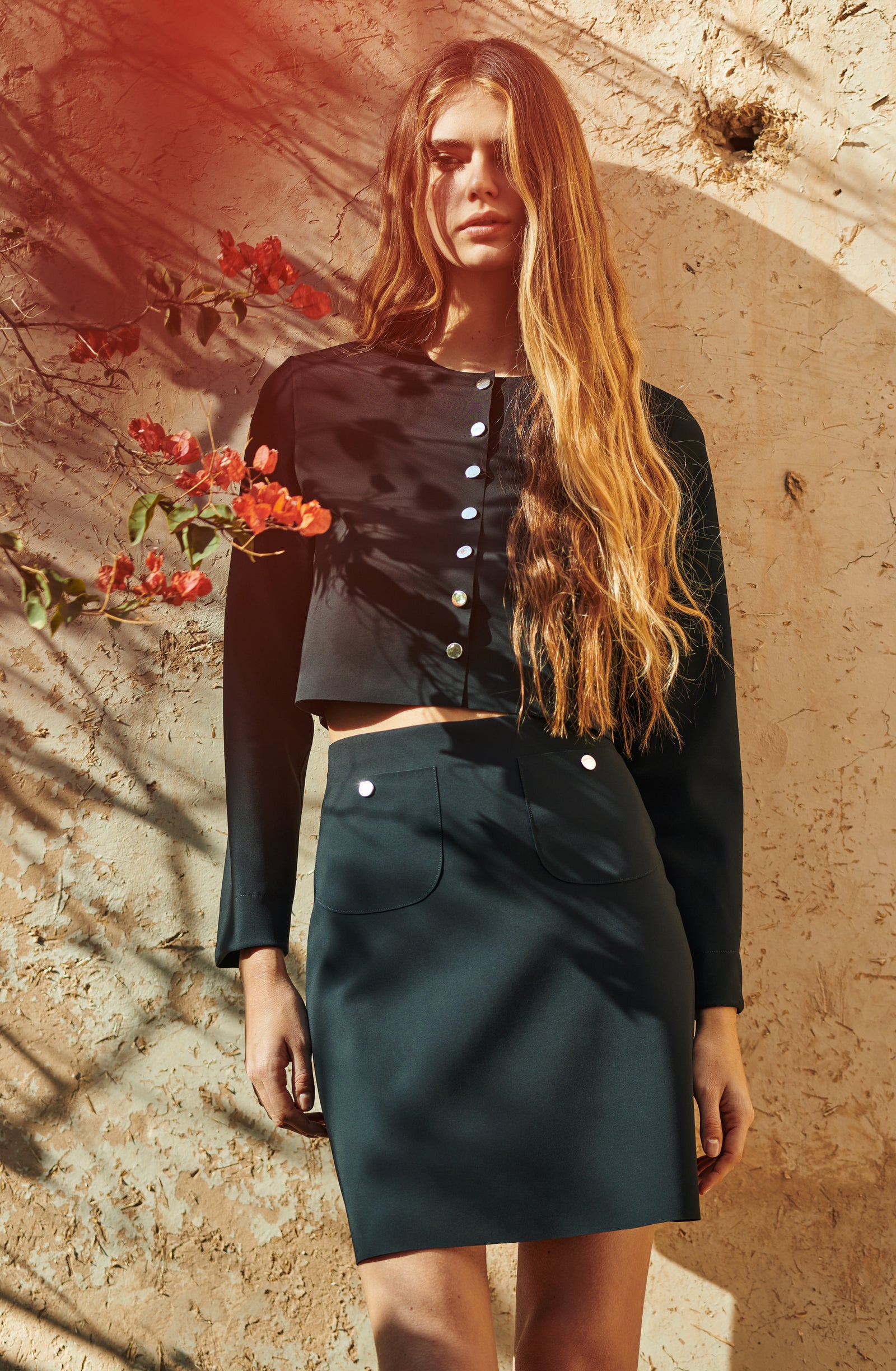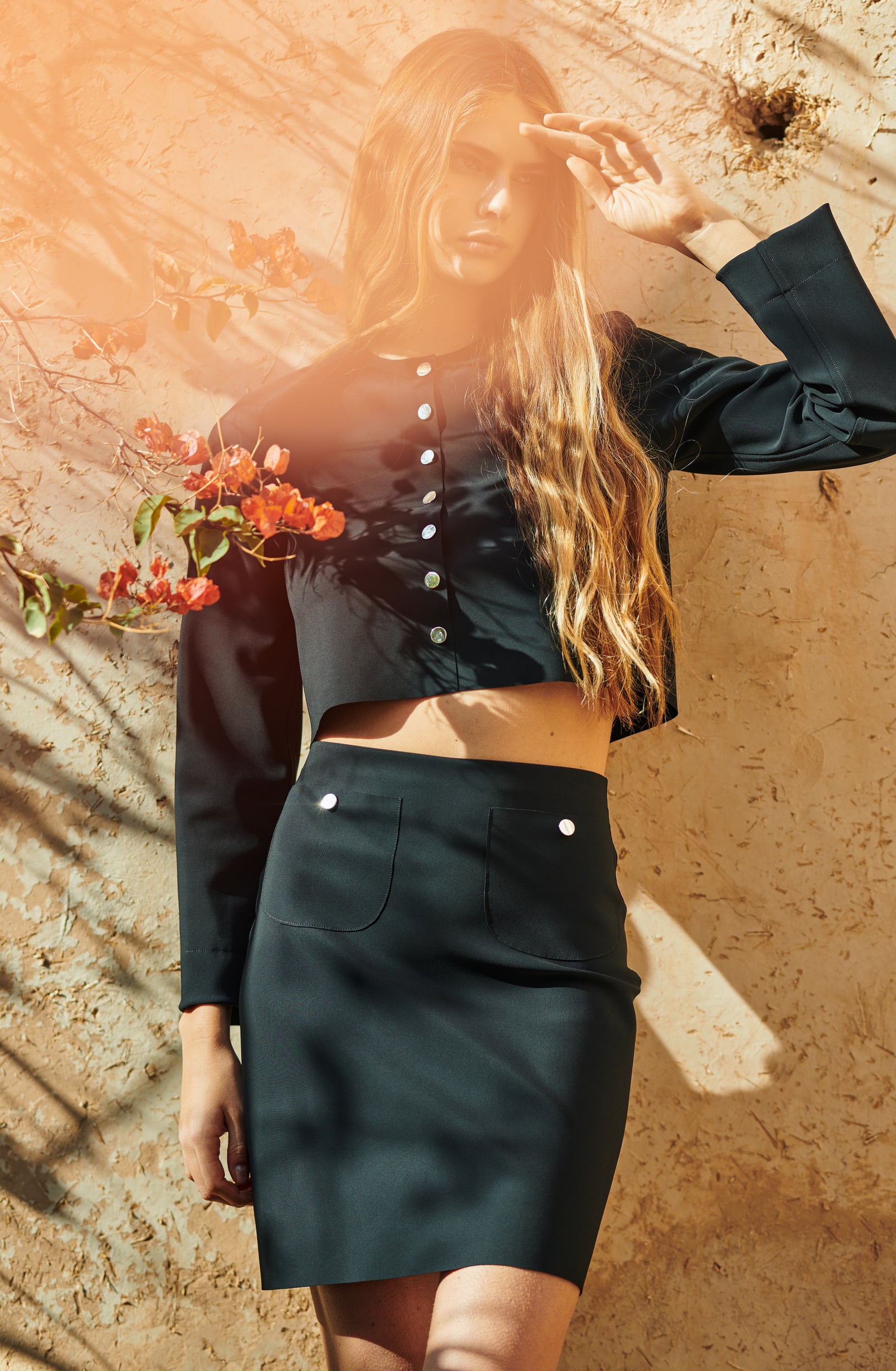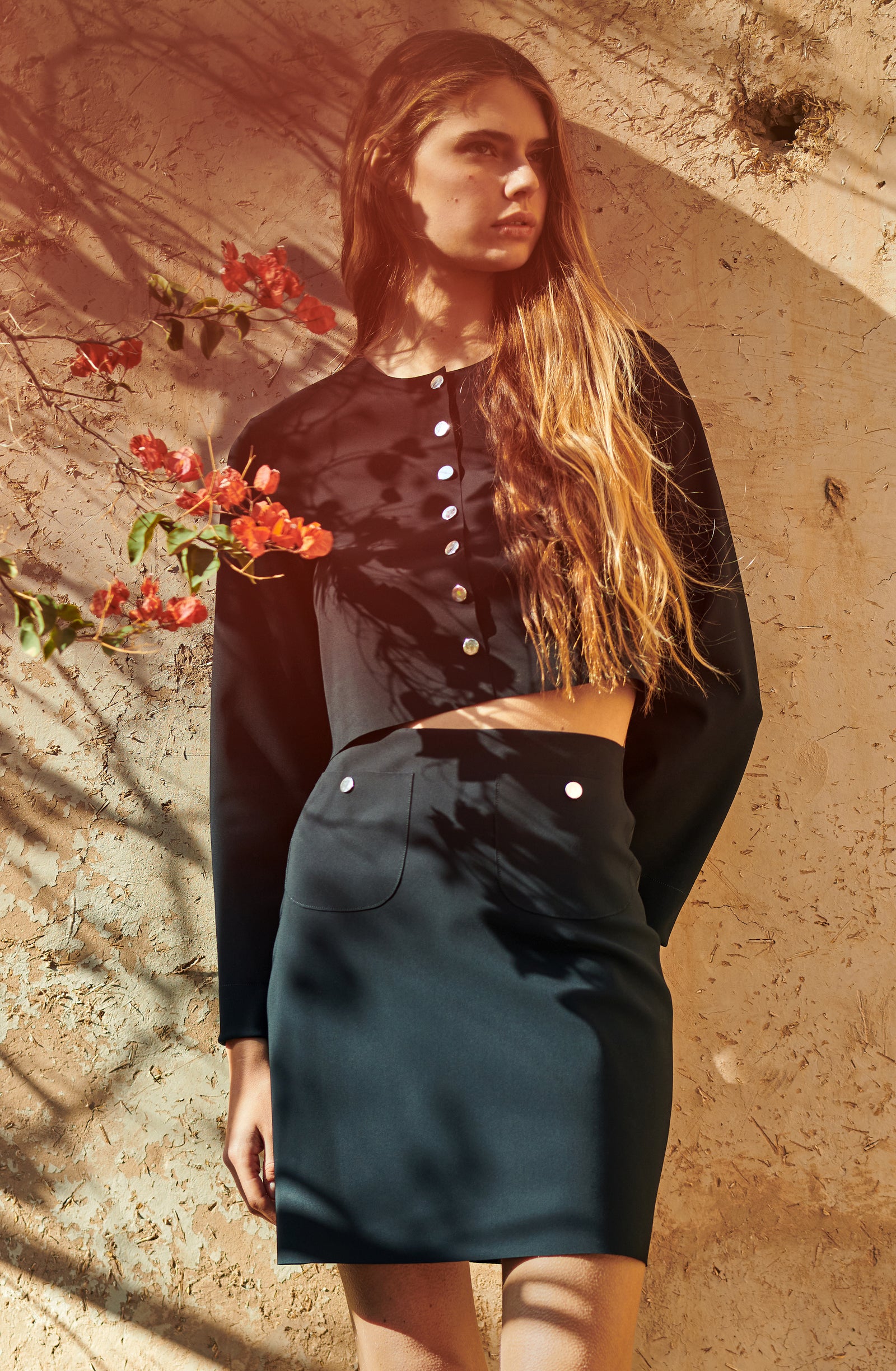 In the golden glow of the setting sun, PAIN DE SUCRE discloses its fall/winter 2025 collection, thus creating a magnetic atmosphere... A cinematic oasis unfolds at the gates of Marrakech, where the sand stretches as far as the eye can see, blurring the senses to wrap us into softness and serenity. The fabrics are noble and comfortable, the lines pure and the palette organic. Cashmere pieces, velvet flocked tulle lingerie line, revamped suits, chic dresses and sheer pleated petticoats, all illuminated by a bright tie and dye print blending ochre, ultramarine blue, snow-foam white from the Atlas Mountains… An enchanted interlude that establishes laziness as a caress, dreams into a truce and beauty glory.