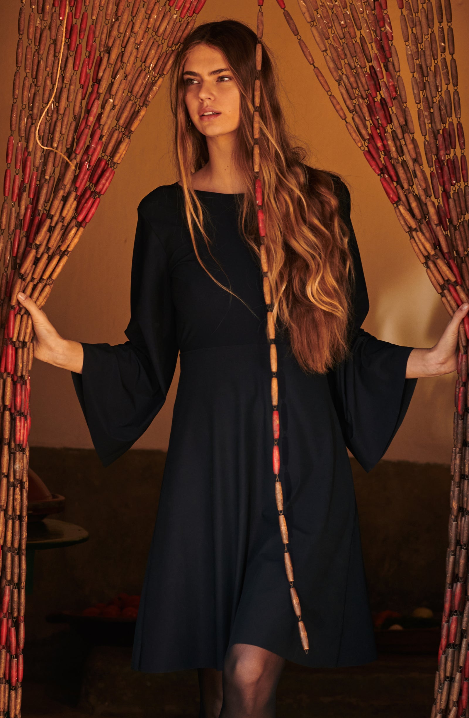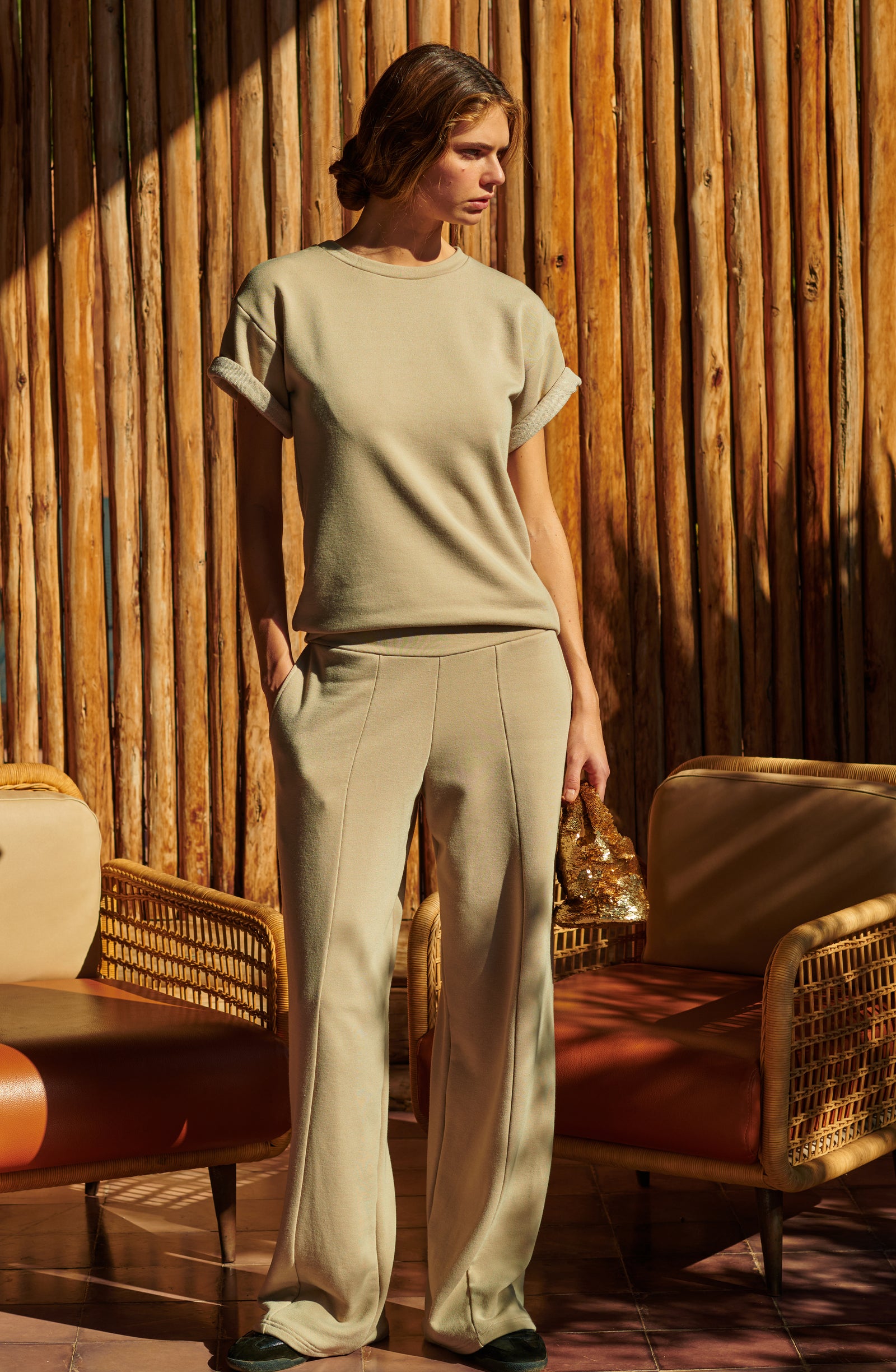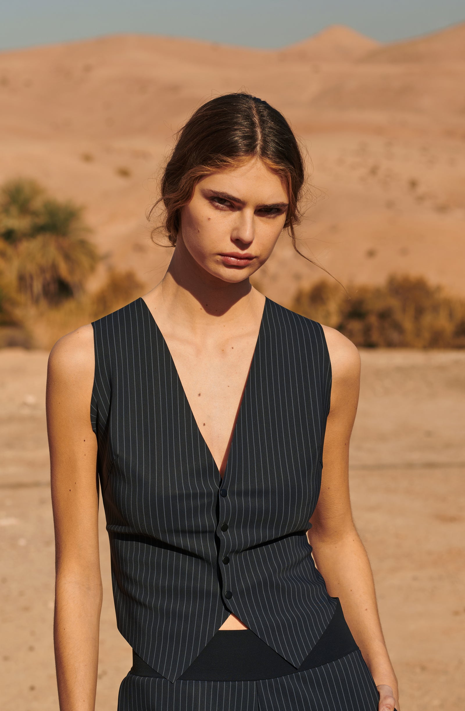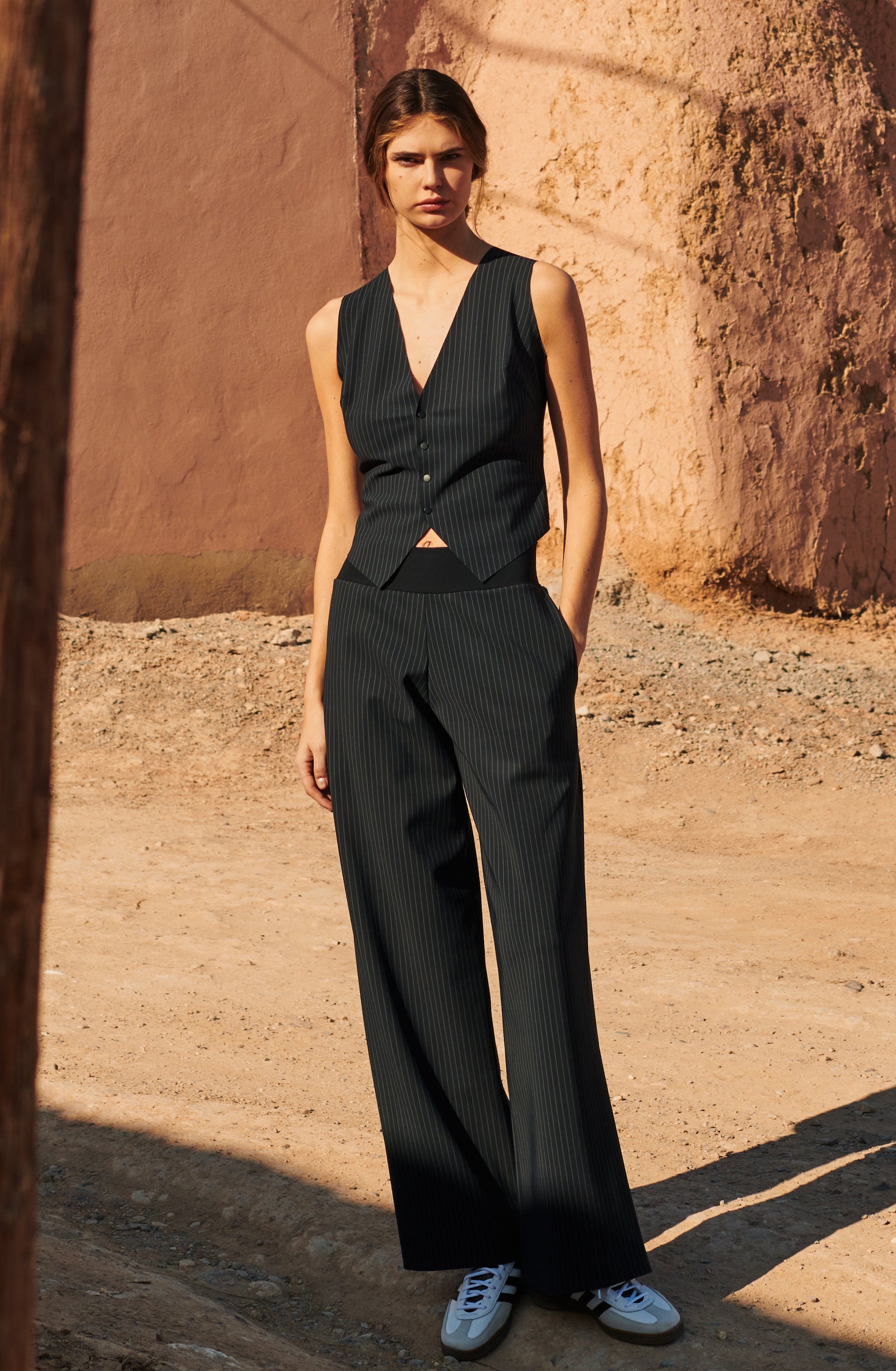 In the golden glow of the setting sun, PAIN DE SUCRE discloses its fall/winter 2025 collection, thus creating a magnetic atmosphere... A cinematic oasis unfolds at the gates of Marrakech, where the sand stretches as far as the eye can see, blurring the senses to wrap us into softness and serenity. The fabrics are noble and comfortable, the lines pure and the palette organic. Cashmere pieces, velvet flocked tulle lingerie line, revamped suits, chic dresses and sheer pleated petticoats, all illuminated by a bright tie and dye print blending ochre, ultramarine blue, snow-foam white from the Atlas Mountains… An enchanted interlude that establishes laziness as a caress, dreams into a truce and beauty glory.