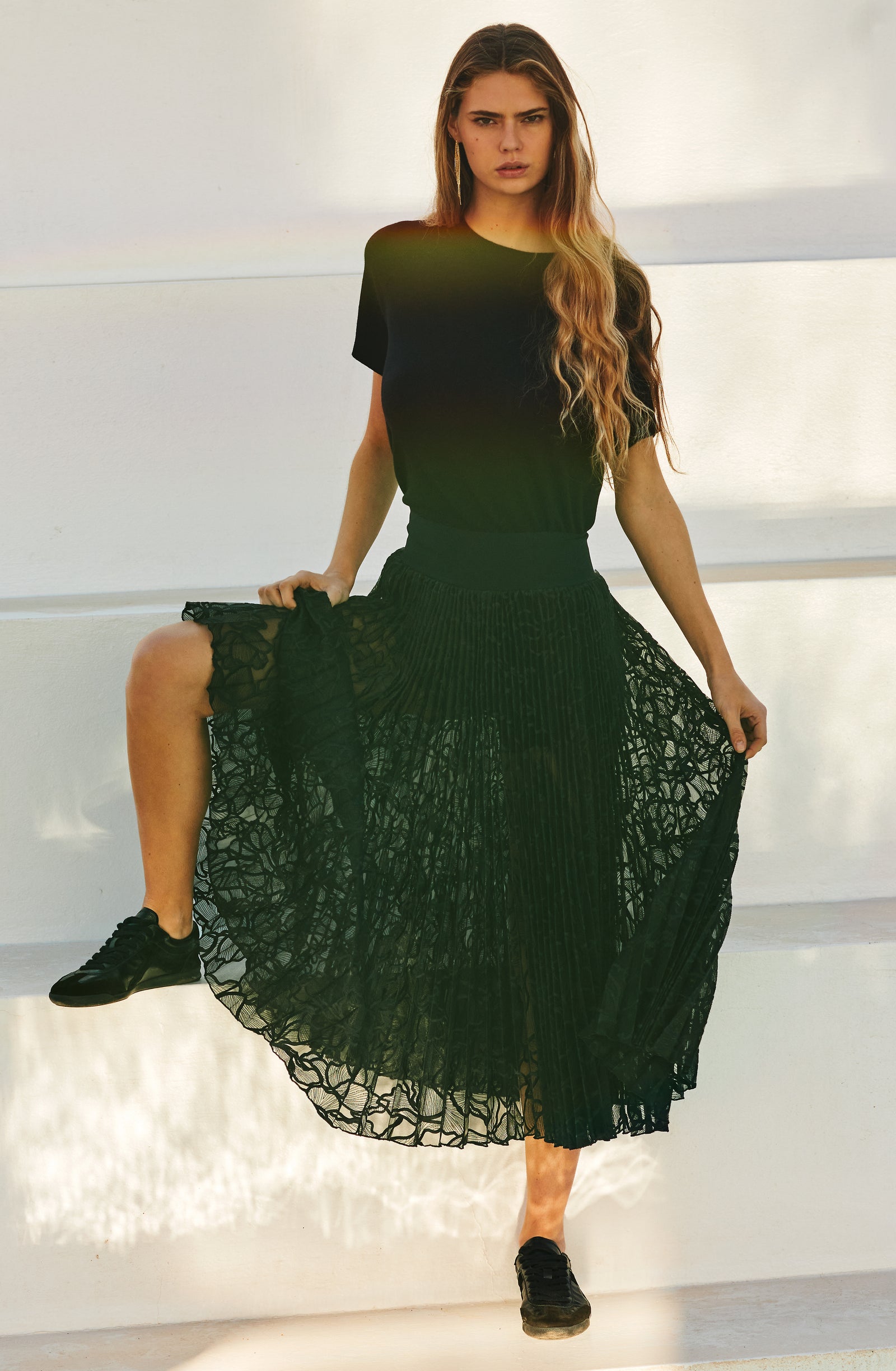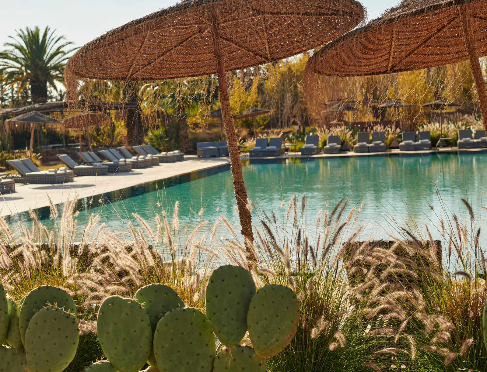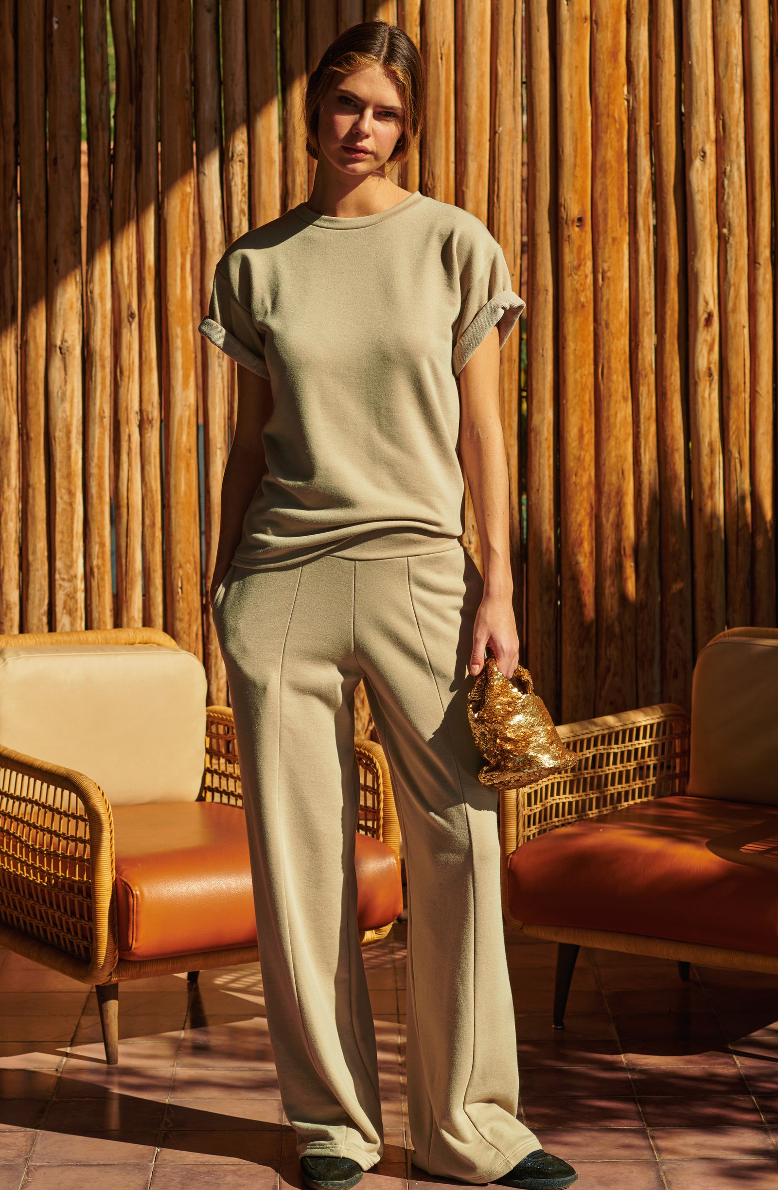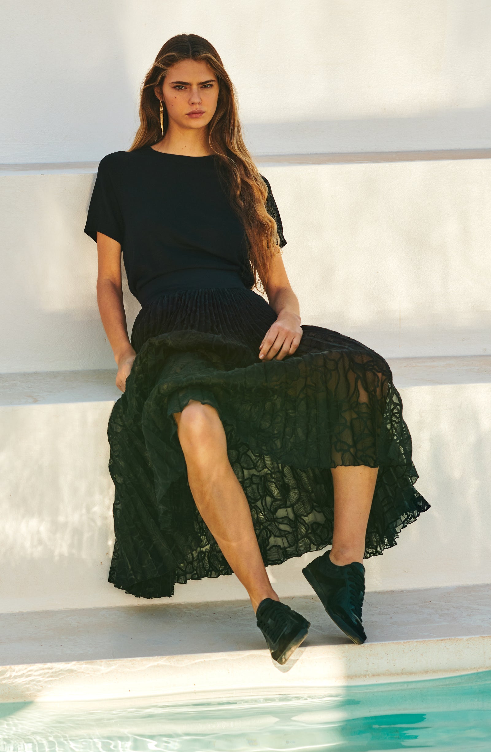 In the golden glow of the setting sun, PAIN DE SUCRE discloses its fall/winter 2025 collection, thus creating a magnetic atmosphere... A cinematic oasis unfolds at the gates of Marrakech, where the sand stretches as far as the eye can see, blurring the senses to wrap us into softness and serenity. The fabrics are noble and comfortable, the lines pure and the palette organic. Cashmere pieces, velvet flocked tulle lingerie line, revamped suits, chic dresses and sheer pleated petticoats, all illuminated by a bright tie and dye print blending ochre, ultramarine blue, snow-foam white from the Atlas Mountains… An enchanted interlude that establishes laziness as a caress, dreams into a truce and beauty glory.